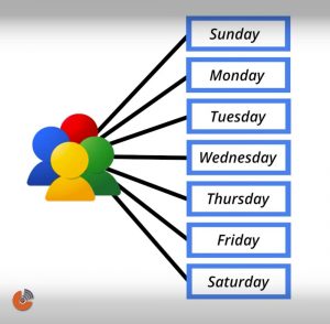 شما می توانید داده های بدست آمده را براساس روز هفته و ساعت طبقه بندی نمائید، این به شما کمک می کند تا بتوانید تعداد مخاطبین را در روزهای مختلف هفته و در ساعت های مختلف روز با هم مقایسه نمائید. ( رفتارهای مختلف بازدیدکنندگان در روزها و ساعات مختلف )