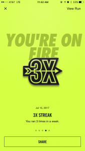 نایکی مکررا بردهای کوچک و دستاوردهای کاربران را با پیامهای شخصی سازی شده به آنان تبریک میگوید و آنها را به ادامه فعالیتشان تشویق میکند. روند مداوم تشویق کاربران باعث افزایش اعتماد آنها به تواناییشان میشود که همزمان نیز مشارکت آنها را در اپلیکیشن افزایش میدهد. کاربر با هر دوندگی دستاورد جدیدی به دست میآورد که میتواند با دوستان خود به اشتراک بگذارد و در طی زمان آن دستاورد را ارتقا دهد.